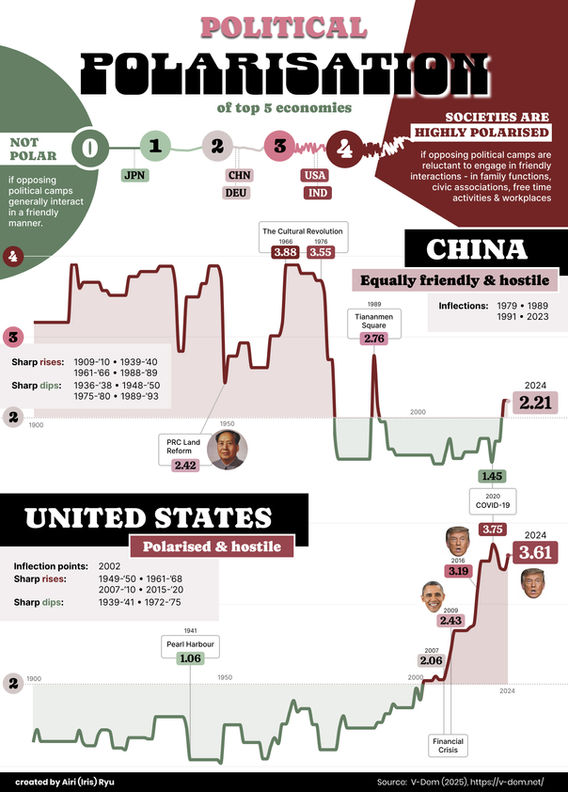 Political Polarisation overtime in China and the United States.